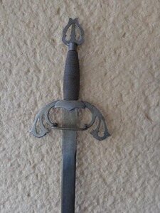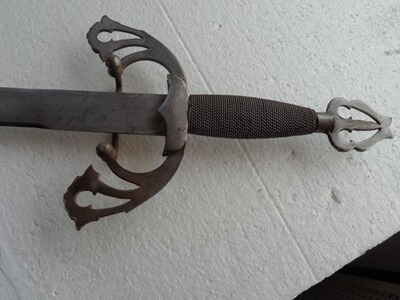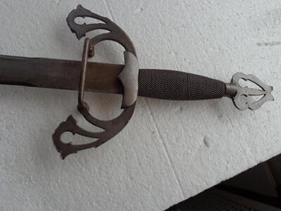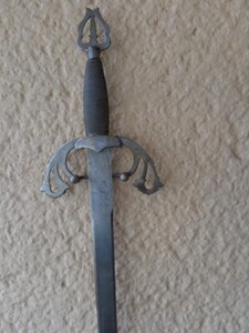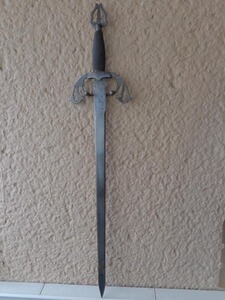Im Fundus einer alten Militaria Sammlungs Auflösung fand sich auch diese historische Nachbildung von TIZONA, eines der beiden spanischen Schwerter von Rodrigo Diaz de Vivar, genannt El Cid. Das Original besitzt noch Gravierungen auf der Klinge und wurde 2007 für 1,6 Mio € von der Stadt Burgos erworben. Die Griffgestaltung erfolgte in Anlehnung an die Katholischen Könige im Renaissancestil. Das hier angebotene Objekt ist etwas kürzer als das Original (103 cm) 78 cm, die Klinge 60 cm und 3 cm breit, Die Klinge hat auf den Schneiden 3 eingeschliffene kleine Kerben - wofür diese angebracht wurden (original) kan ich nicht erklären. Es ist sehr stabil, nicht geschliffen und ist trotz von Altersspuren ein schönes historisches Dkorationsobjekt. Bilder sind Bestandteil des Angebotes. Der Versand erfolgt versichert – gegen Sendungsverlust und Sendungsbeschädigung - nur an Postanschrift. Mit Gebot Abgabe wird akzeptiert, dass Rücknahme, Umtausch, Rücktritt, Garantie sowie Gewährleistungsansprüche ausgeschlossen sind. Fachgerechte Zuordnung schließe ich ebenfalls aus. Die Versandkosten beinhalten NICHT NUR das Porto! und gelten nur für Deutschland.