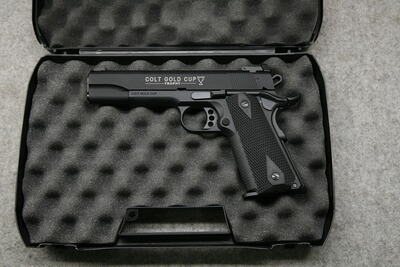 Kaliber .22 lfb (.22 lr). Lauf 127 mm. Von COLT lizenzierte und geprüfte KK-Pistole der 1911er Plattform. Authentischer Nachbau der berühmten COLT Gold Cup Matchpistole. Bedienelemente funktionieren wie beim Original.