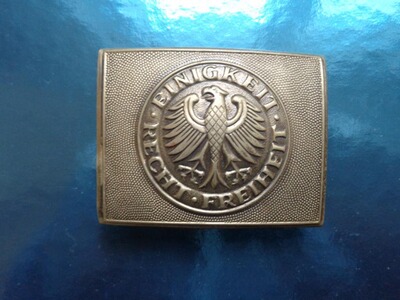 Aus Auflösung einer Militaria Sammlung, in Verbindung mit einem Nachlass, biete ich diese Koppelschnalle/Koppelschloß der Deutschen Bundeswehr. Es hat keine Schäden, scheint kaum benutzt worden zu sein und ist nicht nur Sammelobjekt sondern auch anderweitig verwendbar.