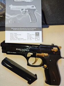 Hallo , ich verkaufe hier meine Ekol Firat Magnum schwarz/gold im Kaliber 9mm P.K mit der PTB Nummer 1112 , Beschussjahr CE.