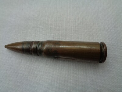 - 1x Exerzier-/Pufferpatrone mit lackierter Stahlhülse, Bodenstempel von 1962