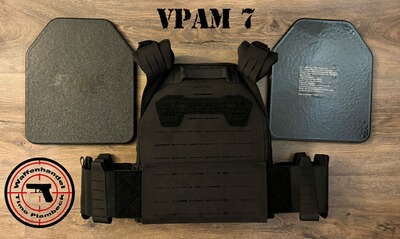 Hinweis: Der Plattenträger enthält bereits ballistische Stahlplatten der Klasse VPAM 7 !!!