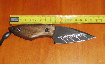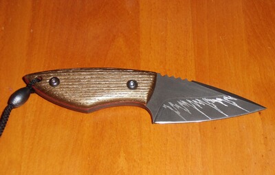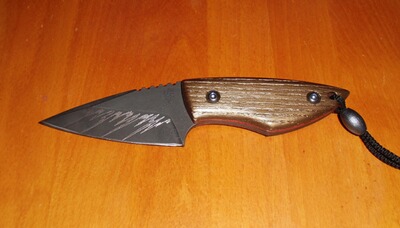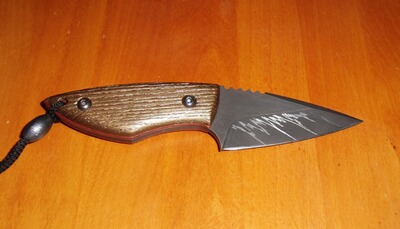 die Klinge ist aus D2-Stahl geschmiedet, die Griffschalen sind aus Eschenholz gefertigt (Farbe: bronze),