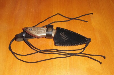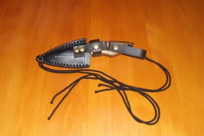 das Messer wird geschützt durch die beiliegende Messerscheide aus Leder mit Schlaufe für die Befestigung am Gürtel,