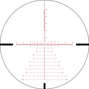 Das Glas ist in einem ausgezeichneten Zustand, da ich es selber erst seit 2024 besitze. Die Türme klicken gut, der Vergrößerungsring ist mittlerweile gut eingefahren und läuft besser als am Anfang und die Optik ist absolut klar. Das Absehen ist das simple aber gute EBR-7C mit MRAD-Skala. Dabei handelt es sich um ein beleuchtetes "Tannenbaum"-Absehen in der ersten Bildebene, siehe auch das Bild. Das Glas ist somit für präzise, weite Schüsse ausgelegt. Am Tubus hat das Glas leichte Montagespuhren, die man wahrscheinlich sogar noch wegpolieren könnte, ich habe auf die Arbeit keine Lust mehr. Für den Fall der Fälle hat Vortex eine erstklassige, lebenslange Garantie, die auch in Deutschland bedient wird, weshalb man sich da keine Sorgen machen muss.