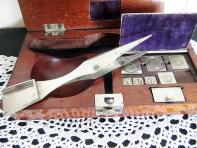 Biedermeier Apotheker Reise Waage Gold Münzwaage Antik