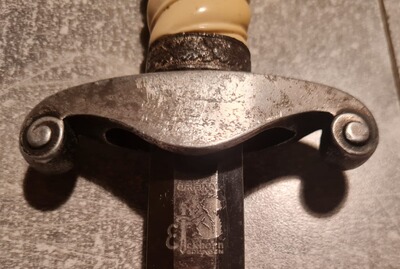 Heeresoffiziersdolch der Wehrmacht. Die Klinge befindet sich in einem sehr gutem Zustand. Das Griffstück hat Spannungsrisse, und kleine Schleifspuren. Auf der Klinge ist ,,Original Eickhorn Solingen" geprägt. Die Parierstange ist in einem sehr gutem Zustand. Scheide und Gehänge sind nicht vorhanden.