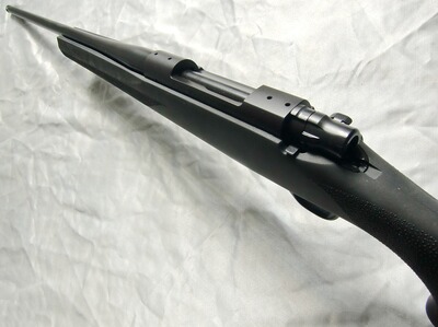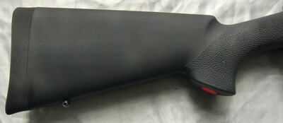 Schaft: mattschwarzer Hogue-Synthetikschaft mit griffiger und angenehmer Beschichtung, ohne Backe, mit Pistolengriff, Riemenösen zur Riemenbügelbefestigung und Gummischaftkappe, keine Schränkung, für Li.- und Rechtsschützen geeignet.