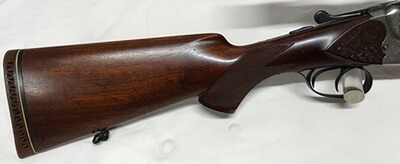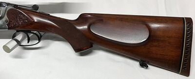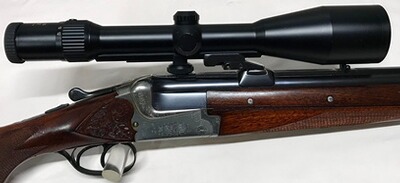 Die Bockbüchsflinte stammt aus einem Nachlasskonvolut und befindet sich in einem gepflegten und sehr guten Gesamtzustand. Die Brünierung ist zu 99,9% vorhanden. Das Laufinnere ist spiegelblank ohne sichtbare Beschädigungen, Züge und Felder sind scharf, was auf einen geringen Gebrauch schließen läßt. Der Holzschaft und das System zeigen normale leichtere Gebrauchsspuren (siehe Bilder). Die Stahlbasküle ist mit Arabesken verziert. Aufgewertet ist die Bockbüchsflinte mit einer ERA--Schwenkmontage 30mm-Ring und einem Zielfernrohr Docter Unipoint 3-12x56, Abs. 56, 1.BE.