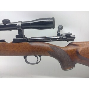 Der Urrepetierer im drückjagdstarken Kaliber 9,3x62! Hervorragende Ausstattung: Timney Featherweight Flintenabzug mit seitlicher Schiebesicherung, zwei Zielfernrohre für Ansitz und Drückjagd, Drückjagdschiene, rotes Leuchtkorn. Mittels der EAW Montage mit Ringen ist es kein Problem, kostengünstig ein modernes Zielfernrohr zu montieren.
