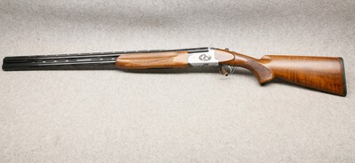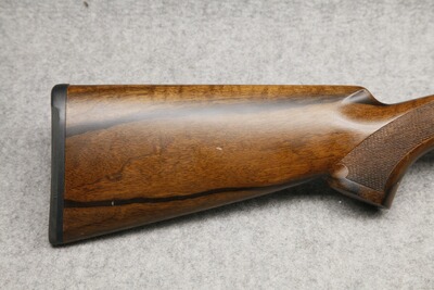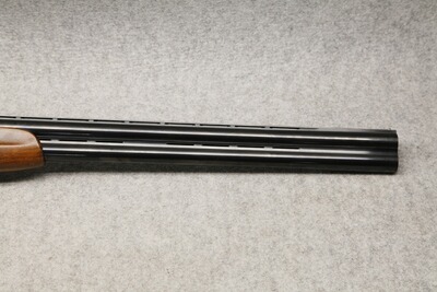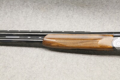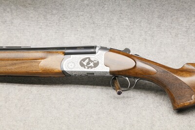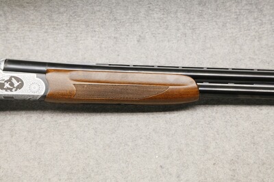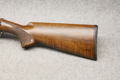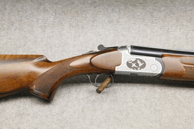Kaliber 12/76. Lauflänge 71 cm, mit Stahlschrotbeschuss, ventilierte 7 mm Schiene, Wechselchokes (1/4, 1/2, 3/4, 1/1). Einabzug mit mechanischer Umschaltung. Blitzsystem mit Schiebesicherung auf dem Kolbenhals. Stabile Keilverriegelung. Stahlbasküle mit Jagdgravur. Nußbaumschaft, Schaftlänge 370 mm, Senkung 38/56 mm, mit Gummikappe. Gewicht ca. 3,2 kg.