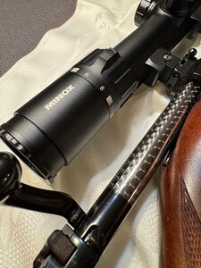 Der Lauf wurde gekürzt und mit einem Mündungsgewinde ausgestattet. Zudem ist über eine EAW-Schwenkmontage ein fast neues Minox 3-15x56 Zielfernrohr mit Leuchtpunkt verbaut. Der wenig beschossene Hausken MKII Schalldämpfer macht aus diser Büchse mit einem 3 Schuss Magazin den perfekten Allrounder für Ansitz und Pirsch.