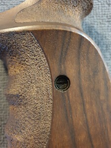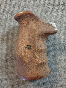 Holzgriff für Smith & Wesson Revolver K-Rahmen. Nur leichte Gebrauchsspuren. Real ist das Holz etwas dunkler als auf den Bildern.