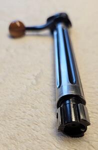 Optisch: sehr guter Zustand; Schaft und Beschichtung gepflegt, keine Risse oder größere Dellen. Minimale Gebrauchsspuren sichtbar auf dem Schaft und an Metalloberflächen.