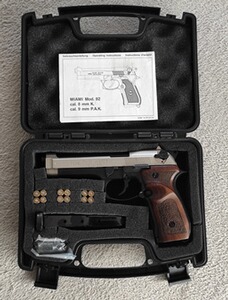 Verkaufe aus eine Sammlung wunderschöne Miami F Mod. 92 9 mm Pak . Ist eine Sammlerpistole welche viele Jahre nur in eine Vitrine stand. Ich denke das die Pistole ungeschosen ist. Hat keine Schussspuren. Mit zwei Magazinen, Koffer und Zubehör. Sehr schöne und hochwertige holzgriffe. Wunderschöne Vitrinenpistole.