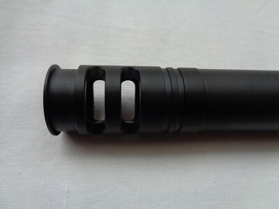 Der Lauf ist natürlich im Kal. .68, besitzt eine Lauflänge von 12“ (30,5cm) und verfügt über eine Mündungsabschluss im AR15 Style.