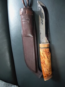 Biete sehr seltenes Puuko aus Finnland, handmade, 6 mm starke Carbon KLINGE, handgefertigtet geschmiedet. Balliger Scandi schliff, 13,8 cm Klingenlänge. Maserbirken Griff mit Knocheneinlage am Ricasso. Gesamtlänge ca. 27cm.