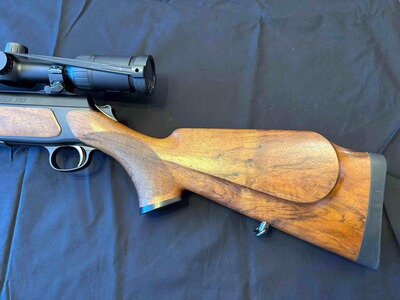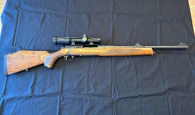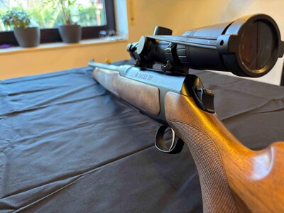 Die Büchse wurde ausschließlich als Drückjagdbüchse geführt, nur wenig geschossen und stets sorgfältig gepflegt. Technisch wie optisch in sehr gutem Zustand.