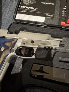 SigSauer X-Five Supermatch "5" in neuwertigem Zustand, Produktion Eckernförde, max. 200 Schuss, kein IPSC, nur Präszision, in 1 a Zustand wie neu mit X-Bridge und Romeo1 Leuchtpunktvisier, mit Laufgewicht, 6 zusätzlichen Magazinen, 1 x Ersatzteilsatz incl. Feder, Auswerfer , Firingpin, Griffschalenschrauben, Magazinschachtrahmen 2 x, damaliger Neupreis 6.113,-- Euro inklusive allem Zubehör. Sondergriffe wie abgebildet, Originalgriffe beiliegend. OVP und alle Papiere Sie erwerben eine der letzten in Deutschland gefertigten Waffen in bestem Zustand zu einem günstigen Preis. Durch Zustand, Ausstattung und Zubehör einmalige Rarität, erstklasssige Präzision, ohne Gebrauchsspuren. Lauf einwandfrei, Waffe ständig gepflegt gelagert. Privatverkauf, keine eigene Gewährleistung Waffe kann jederzeit besichtigt und nach Absprache als Gastschütze getestet werden, soweit WBK mit Voreintrag vorhanden ist. EWB erforderlich! Wichtiger Hinweis! Der Verkauf zwischen EU-Staaten muss mit dem "EU-Export-Formular" abgewickelt werden. (S. Hilfethema "vereinfachter EU-weiter Waffenverkauf") Important Note! For sales between EU countries, use of a certain form is required. (--> Download) Altersnachweis erforderlich!