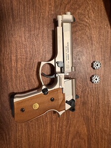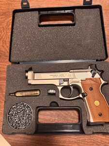 Beretta M 92 FS vernickelt CO2 Pistole mit braunen Holzgriffschalen