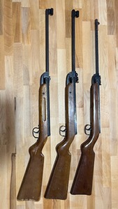 Biete Konvolut alter Diana Luftgewehre. Die Luftgewehre stammen aus den 50er/60er Jahren. Alle sind ohne F Kennzeichnung. Angebot beinhaltet das Modell 23 und 2x das Modell 25. LGs sind schussbereit. Druck gut, Spannen, Einrasten, Abschlagen funktioniert. Authentischer Zustand mit altergemäßen Gebrauchsspuren. An einem Modell 25 wurde gebastelt und anscheinend versucht eine Optik anzubringen. Aufgrund des Alters sind die Modelle zur Resauration für Fachkundige angeboten. Sicherlich für Sammler interessant, welche die alten Exemplare zu schätzen wissen. Bitte auch beiliegende Fotos beachten - diese sind mit Teil der Beschreibung. Kaufpreis ist inkl möglichen Postversand. Versand nur innerhalb Deutschland möglich - keine Inseln. Bei Versand ist Vorkasse per Überweisung oder PayPal möglich. Altersnachweis mind 18 Jahre ist notwendig. Bei Fragen bitte jederzeit um Kontakt.