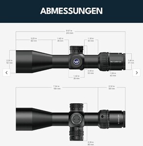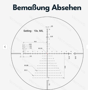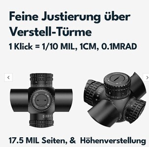 - Verstellung: 1/10MIL, 1cm, 0,1MRAD
