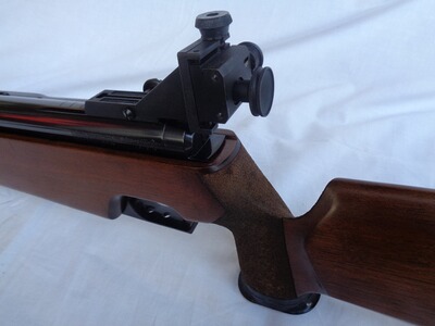 - Verstellbarer Lochkimmen-Diopter und Korntunnel für tauschbare Korne, momentan montiert ist ein Ringkorn