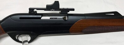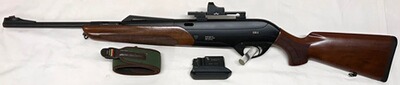 Die Selbstladebüchse stammt aus einem Nachlasskonvolut und befindet sich in einem gepflegten und sehr guten Gesamtzustand. Die Brünierung ist zu 99,9% vorhanden. Das Laufinnere ist spiegelblank ohne sichtbare Beschädigungen, Züge und Felder sind scharf, was auf einen geringen Gebrauch schließen läßt. Der Holzschaft und das System zeigen normale leichtere Gebrauchsspuren (siehe Bilder). Das Steckmagazin faßt 2 Büchsenpatronen. Aufgewertet ist die Selbstladebüchse mit einer EAW-Schwenkmontage Docter Sight und einem Reflexvisier Docter Sight II, Abs. 3,5-Dot.