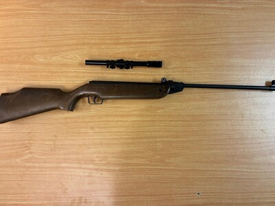 Zum Verkauf steht ein gut erhaltenes Tell Tell 100 Luftgewehr, das nur drei Mal benutzt wurde. Im Lieferumfang enthalten ist ein Zielfernrohr der Marke Jägermeister 4x15, welches auf die Prismenschiene des Gewehrs aufgesetzt werden kann.
