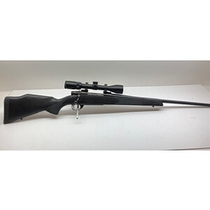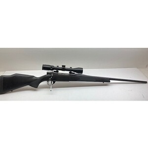 Weatherby Vanguard Repetierbüchse mit schwarzem Kunstoffschaft. Schaftmaß 34cm mit deutscher Backe. Lauflänge 61cm ohne offene Visierung. Direktabzug, Klappdeckelmagazin.