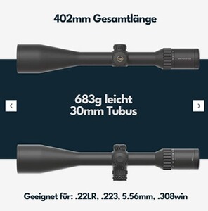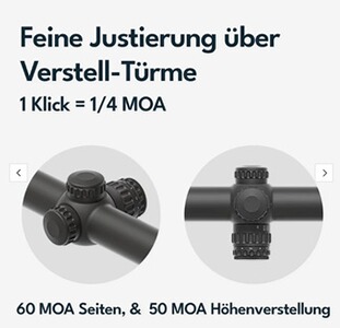 - Turmfunktionen: Höhenverstellung mit Zero Stop, Seitenverstellung mit Turret Lock