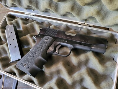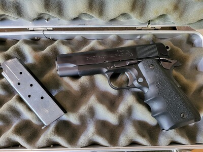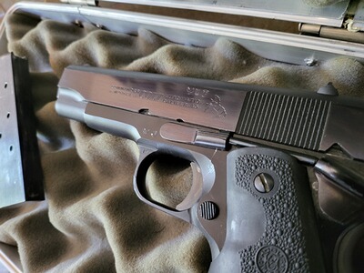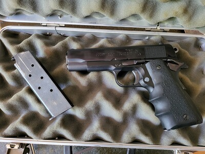 Colt-Waffen zählen zu den hochwertigen Vertretern ihrer Gattung, die "Colt-blue" Brünierung gilt als legendär. Die Waffe macht in diesem tollen Zustand einen ganz großartigen Eindruck, sie überrascht sofort durch ein überraschend geringes Gewicht von 717g ohne Magazin, welches durch das Aluminiumgriffstück (Lightweight Commander) möglich wird. Insgesamt eine klasse Waffe, von der vergleichsweise wenige produziert wurden! Sie macht auf der Jagd, wie auch auf dem Schießstand eine sehr gute Figur, der Griff vermittelt eine sehr gute Handlage. Die Colt-Box ist dabei, die Waffe kommt mit 2 Colt und einem weiteren MecGar Magazin. Mit dieser originalen Colt Pistole Waffe erwerben Sie eine Wertanlage von bleibender Qualität und ein Produkt höchster Wertarbeit und Präzision, an dem Sie ein Leben lang Freude haben werden. Gern können Sie die Waffe nach Absprache in Leipzig begutachten und abholen, bei Bedarf kann die Waffe auch nach Bezahlung für einige Zeit gelagert werden, um einen erforderlichen Voreintrag zu beantragen o.ä.