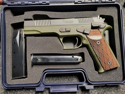Der Zustand der Waffe ist sehr gut erhalten, Lauf blitzblank und scharfkantig, das Griffstück ist Oliv Ceracote beschichtet. Die Pistole kann nach Absprache in Leipzig begutachtet und u.U. auch zur Probe geschossen werden, gern ist unter Wegfall der Versandkosten auch eine Abholung möglich. Kunden aus dem Ausland sind natürlich willkommen, wenn Sie den Import/Export über einen deutschen Händler abwickeln (zum Beispiel Waffen Bock in Pirmasens). Bitte beachten Sie auch meine hochwertigen Angebote bei Auctronia (https://www.auctronia.de/suche?searchcategory=&q=leipzigerzeugwart) sowie immer wieder auch bei www.egun.de (in der Detailsuche „nur Artikel von Benutzer“ den Suchbegriff „leipzigerzeugwart“ eingeben).