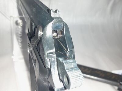 Die Sicherung erfolgt wie beim Original über eine sogenannte Walzensicherung die den Hahn vor dem Schlagbolzen abfängt. Daher ist die Pistole sehr gut zum Führen geeignet.