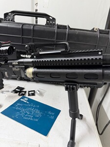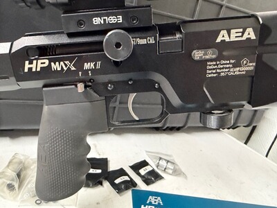 Zubehör: Zielfernrohr Feyachi 4x32 mit farbigen Absehen in Grün-Rot / Zweibein Neuware / Picantiny Bottle Clamp Neuware 3fach am Tank / 1 x Manometer Abdeckung Neuware / Tank und Einfüllstutzen Abdeckung Neuware / 2 x Magazine sowie ein Einzelschussadapter / Professioneller Waffenkoffer abschließbar mit Zahlenschloß. Bedienungsanleitung und Exportkarten von Go Gun 8,0 und 5,5 sowie die F Karte mit 0.9 dabei.