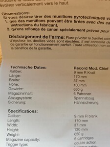 Hallo , ich verkaufe hier meinen Record Chief 2 Zoll Revolver im Kaliber 9mm R.K mit der PTB Nummer 937 (Beschussjahr CF)