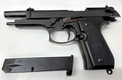 Die Reck Miami 92F PTB 488/2 ist eine alte PTB-geprüfte Schreckschuss-Nachbildung der Beretta 92F im Kaliber 9 mm P.A.K. Sie zeichnet sich durch massive Bauweise und authentische Optik aus.