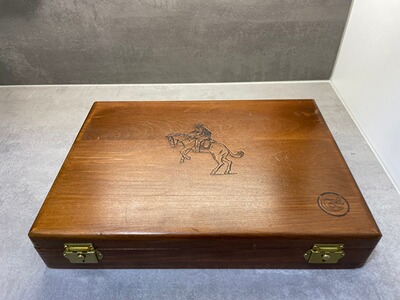 - Verpackung: Holzkassette mit blauem Samt ausgeschlagen