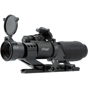 Taktisches Set bestehend aus Leuchtpunktzielgerät PS22 mit 7-stufig verstellbarem 4 MOA-Dot und einem schwenkbaren 3-fach Magnifier. Ausgestattet mit Flip-Up-Schutzkappen und Schutzhalterungen für die Verstelltürme. Die stabilen Montagen sind mit jeweils 3 Schrauben versehen und für Picatinny- und Weaver-Schienen ausgelegt. Inklusive Picatinny-Schiene und Montagen.