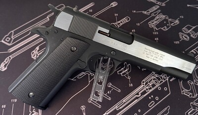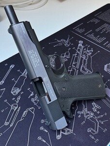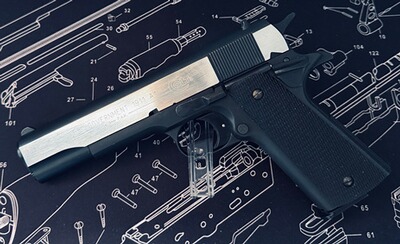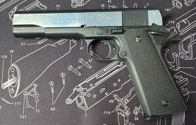 Zum Angebot steht eine Umarex Colt Governm.1911 A1 Dark Ops cal.9mm PAK,mat chrome finish. PTB 774