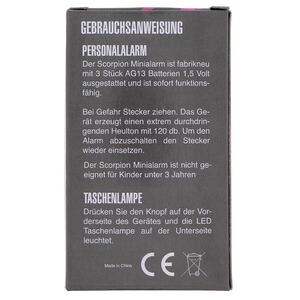 Scorpion Personalalarm 120 db Pink mit LED Lampe + Batterie