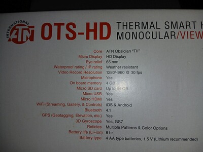 ich möchte gerne mein Wärmebildgerät ATN OTS-HD mit 50mm Linse verkaufen. Das Gerät wurde häufig geführt und hat gute Dienste geleistet. Siehe Bilder