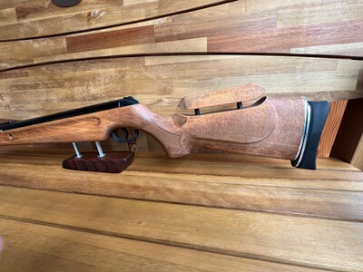 Angeboten wird eine sehr schöne Walther LGV Competition Ultra in der 16J WBK Ausführung. Es gibt durch die Montage und Demontage üblichen Gebrauchsspuren auf dem System. Sie wurde mit folgendem Tuning für das FT/HFT verbessert. Ein Hamster aus Mahagoni wurde angefertigt, der Abzug zerlegt und alle nötigen Flächen poliert und der Kolben mittels abdrehen erleichtert. Eine Bisley Schaftkappe wurde auch verbaut.Desweiteren wurde der Schaft entlakt und mehrfach geölt.