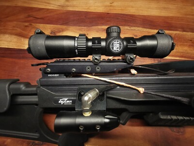 - Excalibur Bulldog 440 in seltenem schwarz mit dem Umbau von Steambow zum leichteren spannen mit Druckluft.