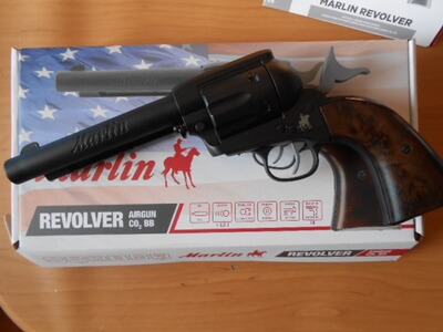Neuer Marlin CO2 Revolver,Kal.4,5 BB,nie benutzt,mit org.Verpackung und Papieren.Schöne Kopie des berühmten Colt SAA für kleines Geld.Noch mit Frankonia Garantie.
