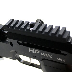 Standard 21mm Picatinnyschiene für die Montage von Zubehör, kann auf eine 11mm Schiene der HPMAX MK2 montiert werden. In vielen Farbvarianten erhältlich. Diese Schiene wurde speziell für die HP MAX MK2 entwickelt, diese ist etwas höher, um mit einer Optik (z.B. einem Red-Dot) das nach oben überstehende Magazin zu überblicken. Besteht aus Kunststoff, daher sehr leicht.