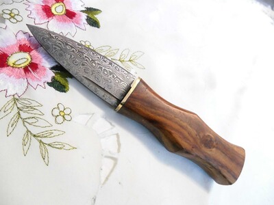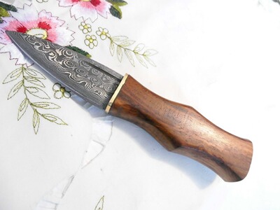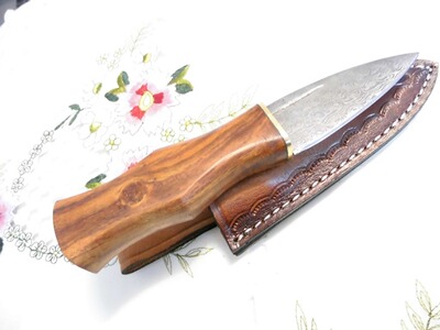 TATLA CRAFT Keltisches Jagdmesser Damaststahl, Rosenholz-Griff, Lederscheide NEU