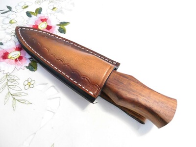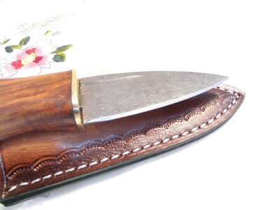 HOCHWERTIGER ROSENHOLZ-GRIFF: Ergonomisch geformter Griff aus edlem Rosenholz mit natürlicher Maserung bietet einen komfortablen und sicheren Halt bei allen Outdoor- und EDC-Anwendungen KOMPAKTE ABMESSUNGEN: Gesamtlänge von ca. 19,7 cm, Klingenlänge von ca. 8,9 cm und Grifflänge von ca. 10,2 cm machen dieses Messer zum idealen Begleiter für Jagd, Camping und den täglichen Gebrauch HANDGEFERTIGTE LEDERSCHEIDE: Inklusive hochwertiger, handgefertigter Lederscheide mit dekorativer Prägung für sicheren Transport und Schutz der Klinge am Gürtel KELTISCHES DESIGN: Traditionelles Jagdmesser mit keltisch inspirierter Formgebung, komplett handgefertigt und ein einzigartiges Unikat für Sammler und Outdoor-Enthusiasten