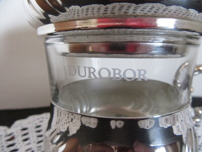 Ökologischer, versilberter Kaffeezubereiter des bekannten belgischen Herstellers Dur-O-Bor. Die an den Historismus erinnernde Ausformung heute selten zu finden.
