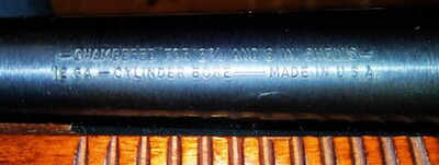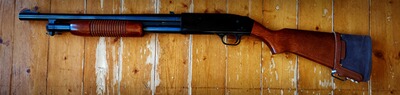 Sehr gut erhaltene Mossberg 500 A mit 48 cm Lauf und 99 cm Gesamtlänge.